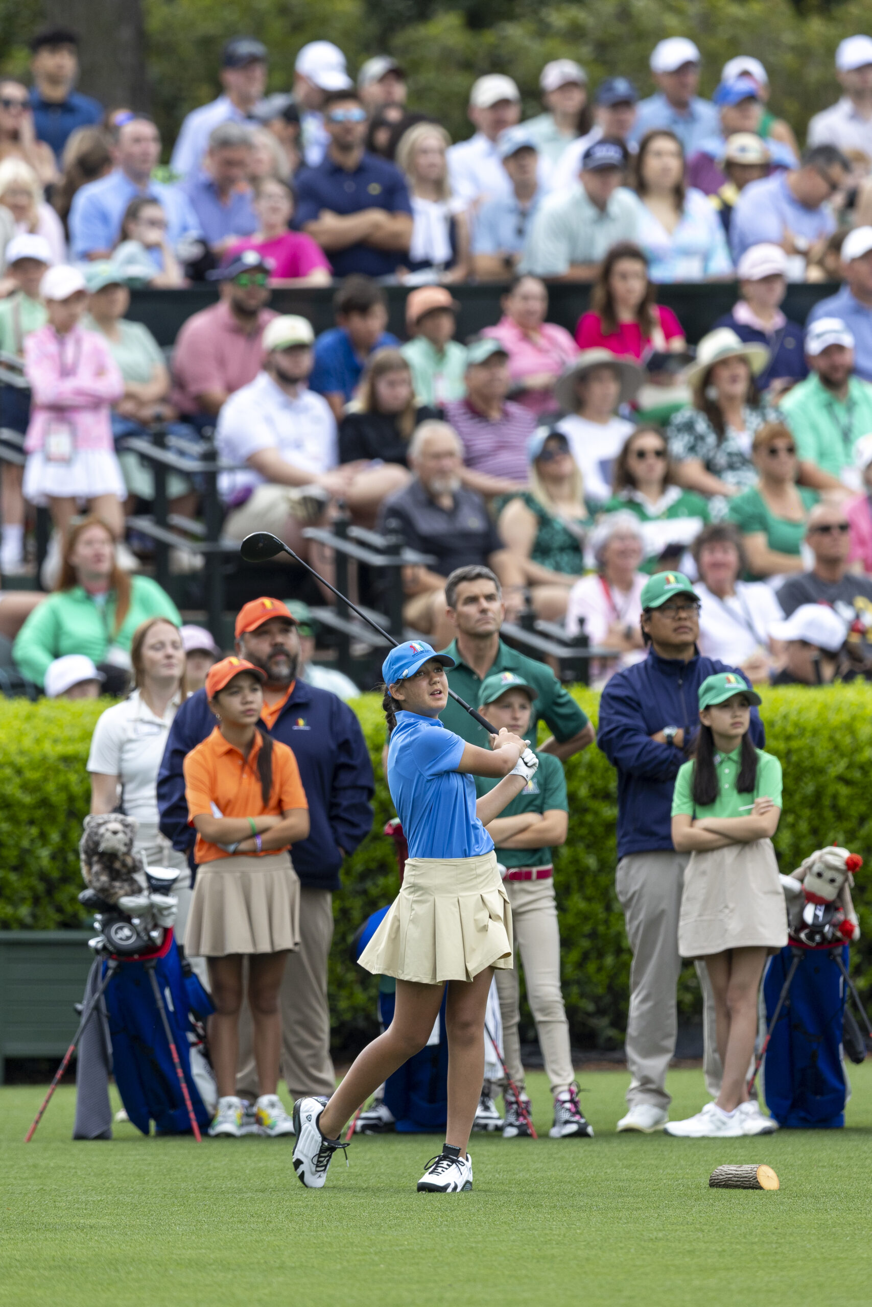 Alexandra Farrell of the Girls 10-11 group drives during the Drive, Chip and Putt National Finals at Augusta National Golf Club, Sunday, April 06, 2025.