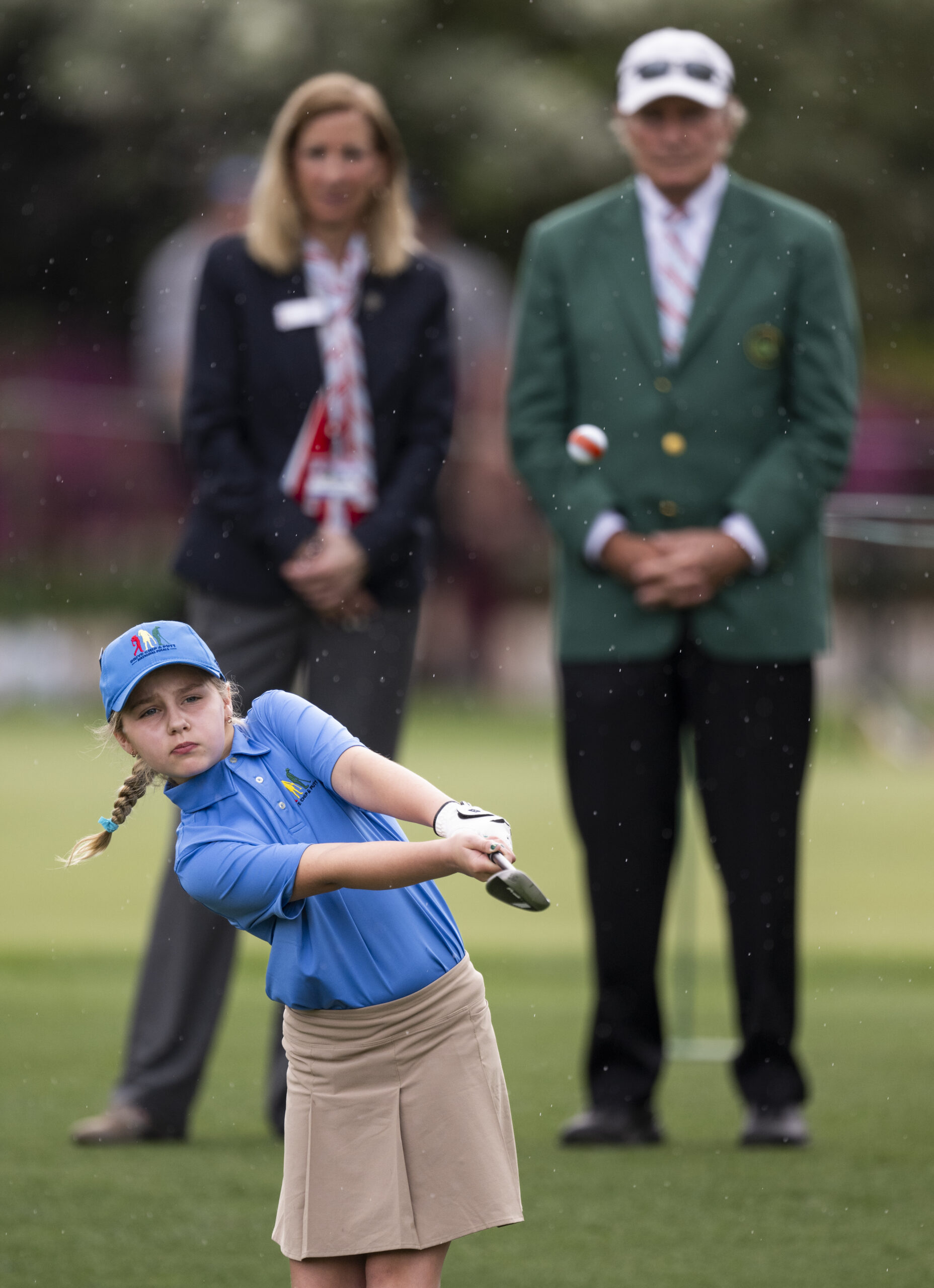 Leah Mack of the Girls 7-9 group competes in the chipping discipline during the Drive, Chip and Putt National Finals at Augusta National Golf Club, Sunday, April 06, 2025.